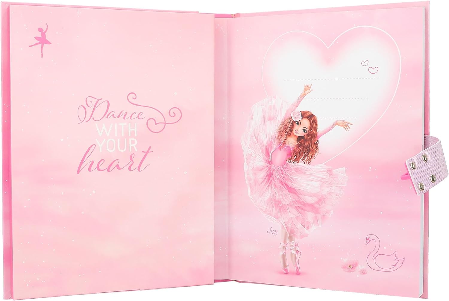 Fantastic de frumos: Jurnalul cu cod si sunet roz TOPModel cu un model mare de balerina se deschide numai cand este introdus codul corect (reglabil personal). Cu 80 de pagini fine, ilustrate colorat.