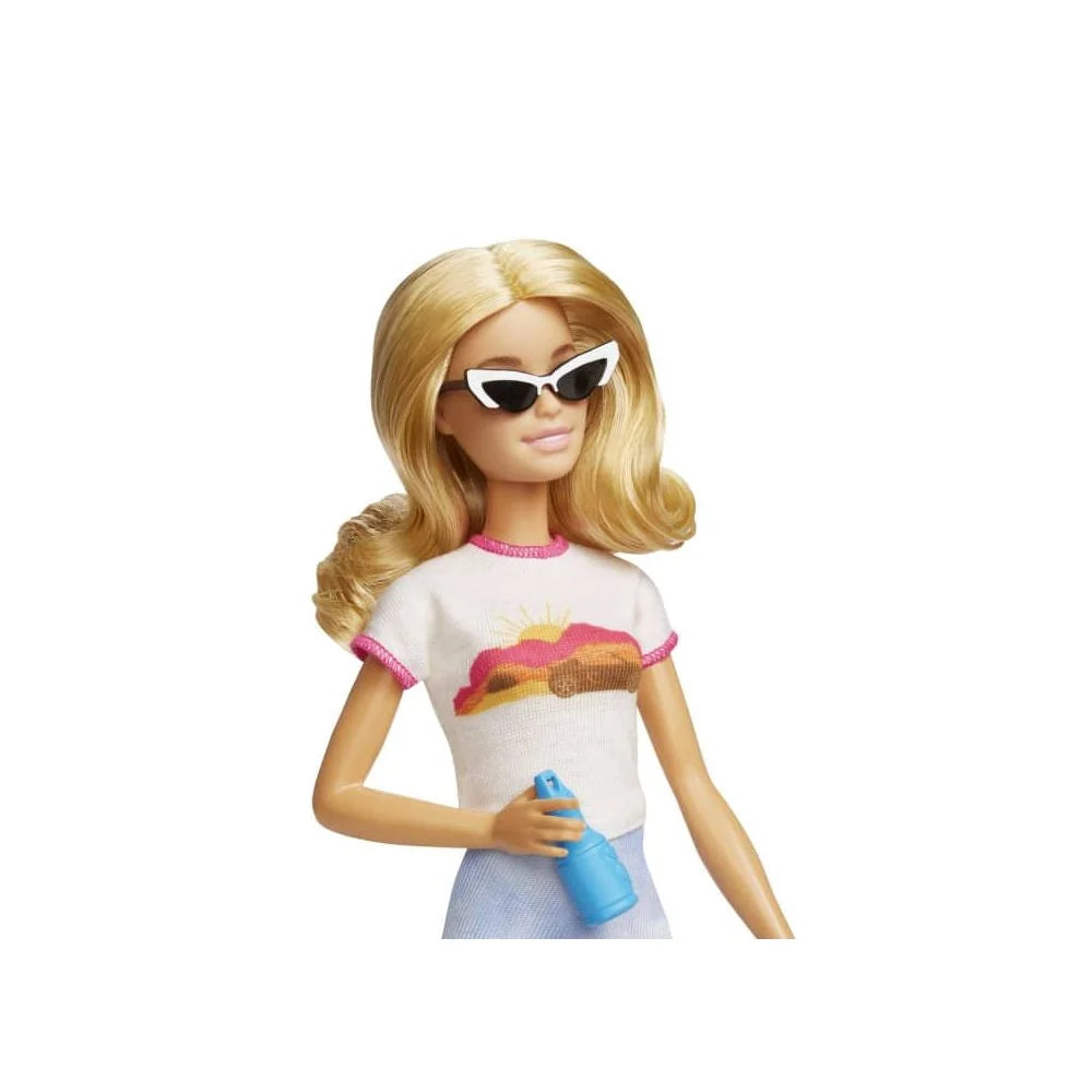 Papusa Barbie este pregatita sa plece spre urmatoarea destinatie intr-o tinuta de calatorie draguta, catelul ei si peste 10 accesorii de calatorie. Pentru a decora bagajul ei, copiii pot folosi fisa cu stickere - acesta se deschide si se inchide pentru o joaca cat mai realista.